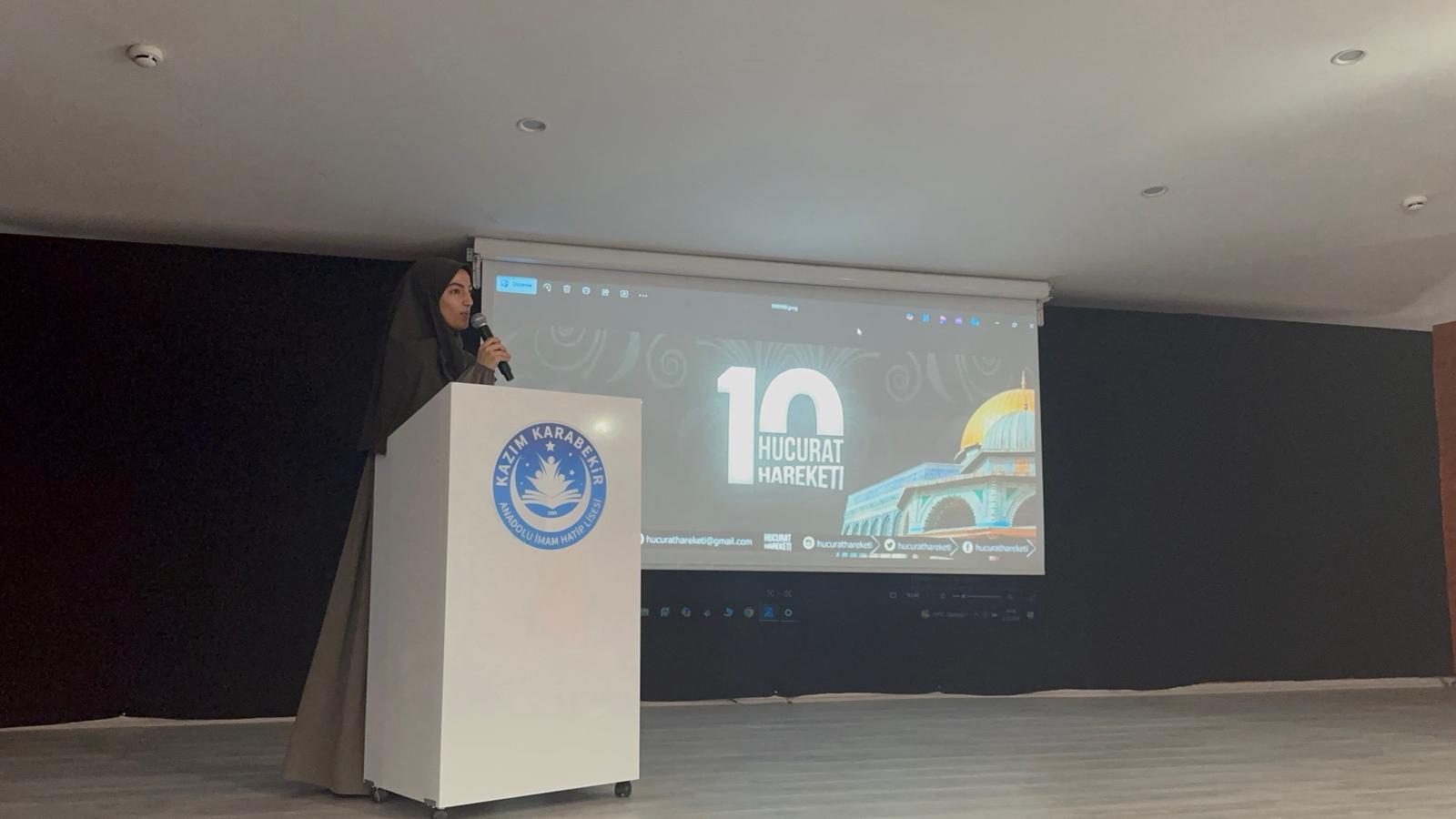 Kazım Karabekir Anadolu İmam Hatip Lisesi’nde “Gazze’nin Sönmeyen Direnişi” adlı söyleşimizde, Gazzeli konuğumuz Alaa Khader hanımefendiyi ağırladık.