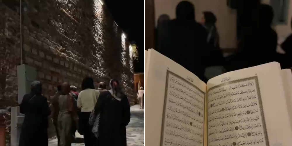 Sultangazi’deki Mekân-ı Aksâ’da toplanan hanımlar imsak vakti girmeden önce minibüsle hareket ettiler. Beyoğlu ve Fatih’ten de özel araçlarıyla hareket eden hanımlar Beşiktaş’ın tarihi camilerden Yahya Efendi Camisi’nde buluştular. Cami içi ve çevresindeki türbeleri ziyaret eden hanımlar namaz vakti girene kadar Kur’an okudular. Kalabalık bir cemaatle kılınan namazın ardından zikirler yapıldı.